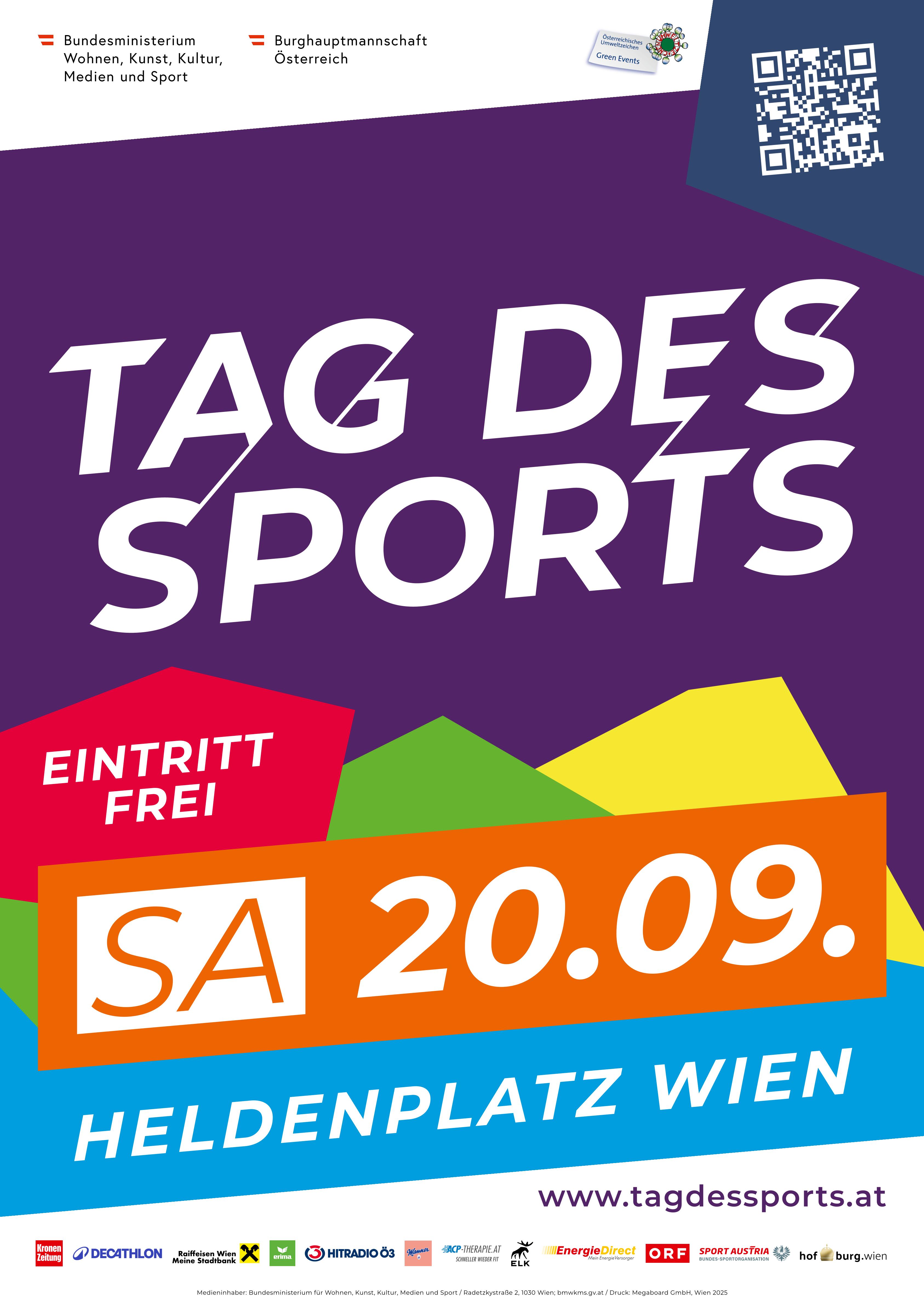 Die 24. Auflage vom Tag des Sports fand am 20. September 2025 erneut am Wiener Heldenplatz statt. Der Termin und das umfassende kostenlose Programm am Tag des Sports waren einer breiten Öffentlichkeit zu kommunizieren.